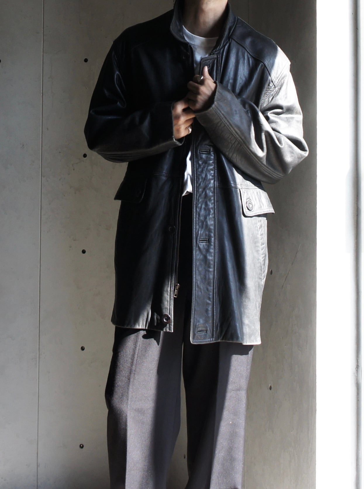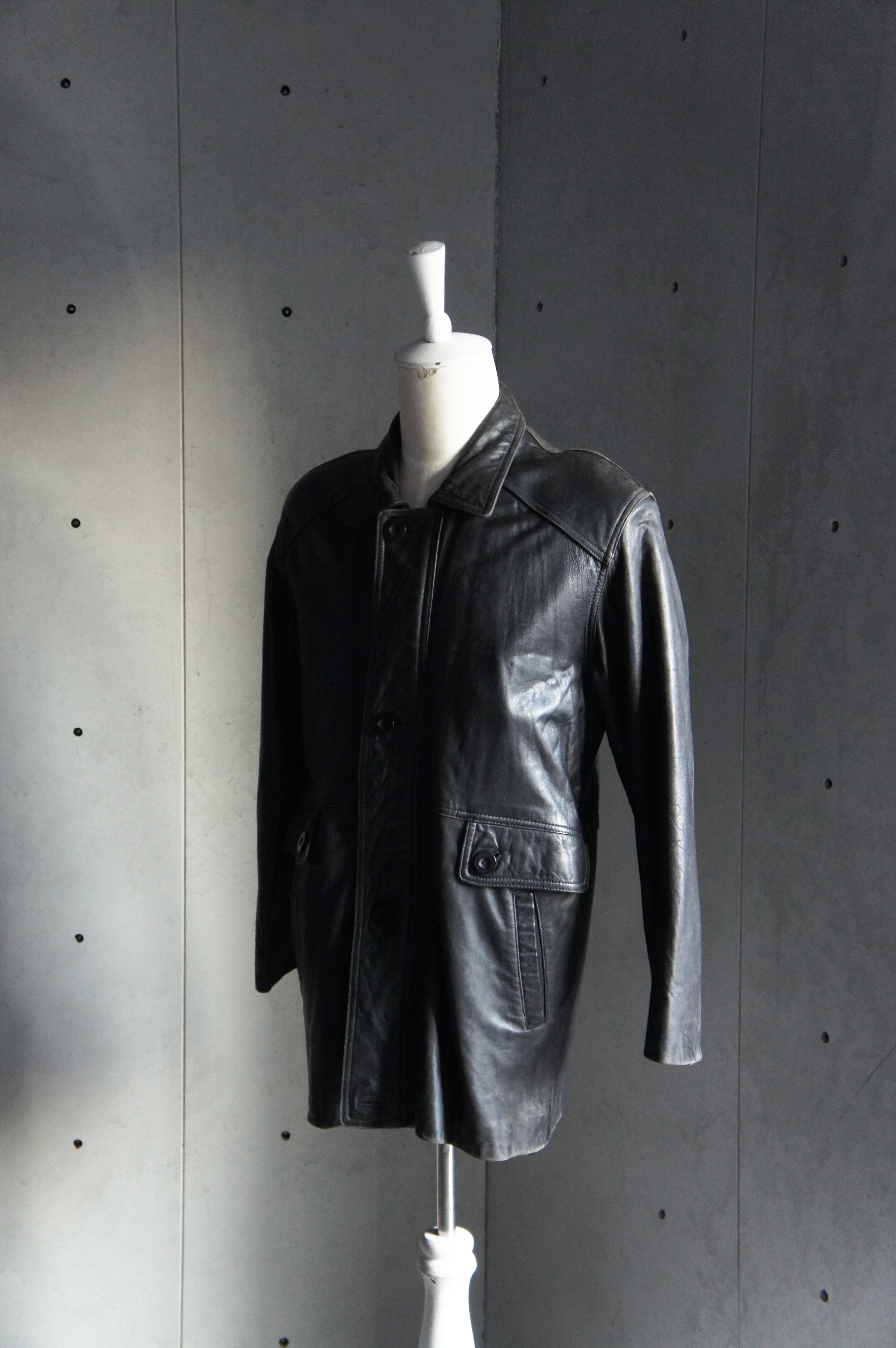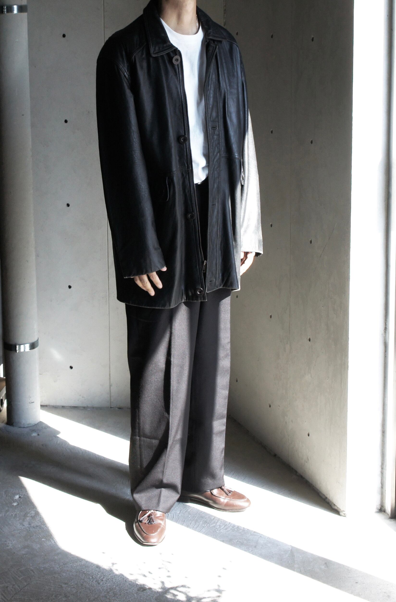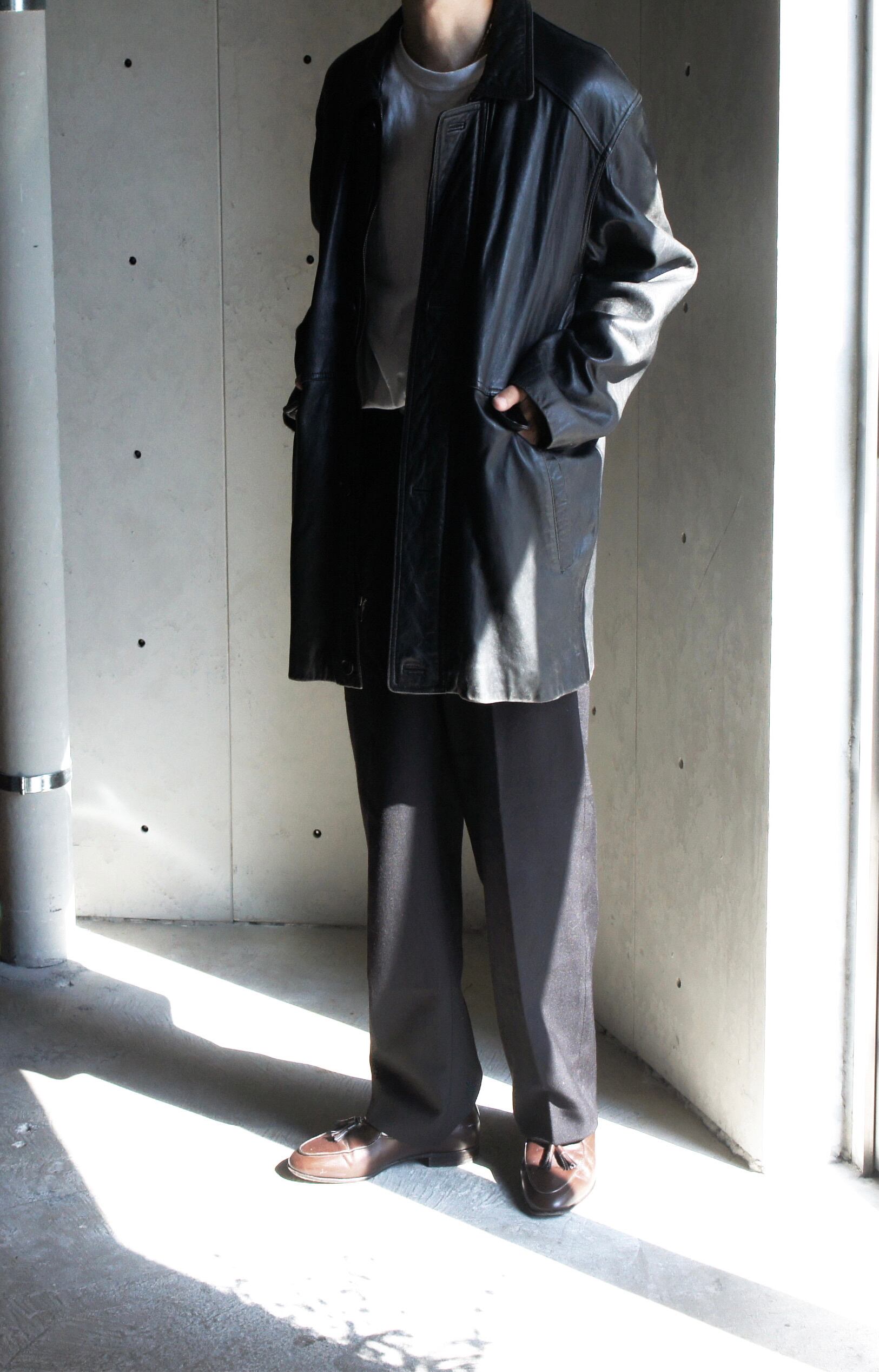 各メゾンやドメスブランドでも冬の定番としてリリースしているレザーのカーコート。