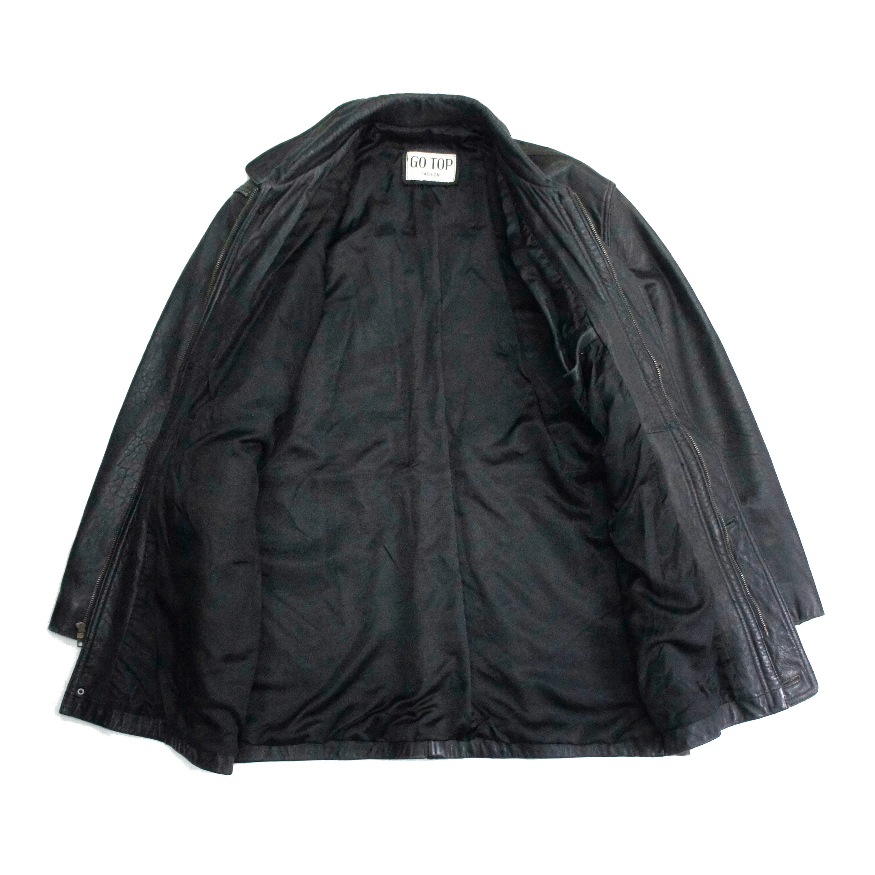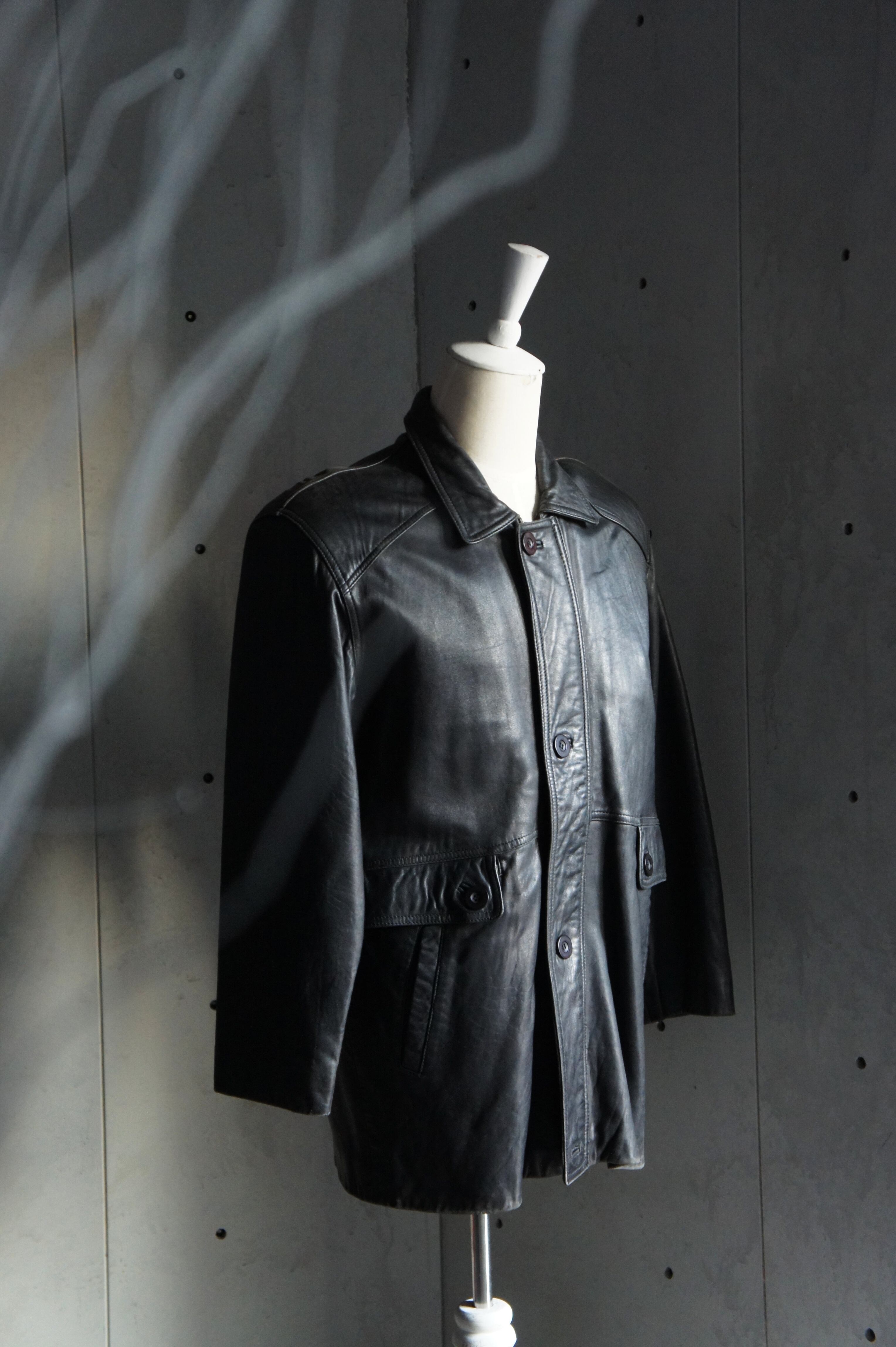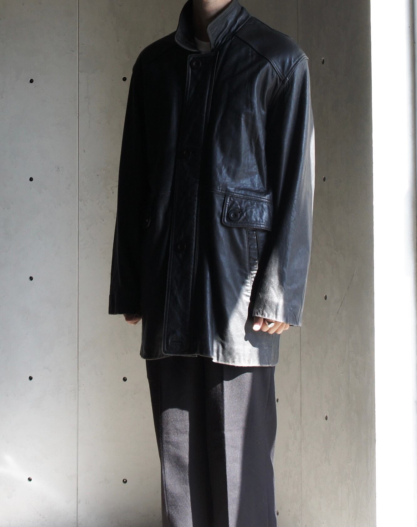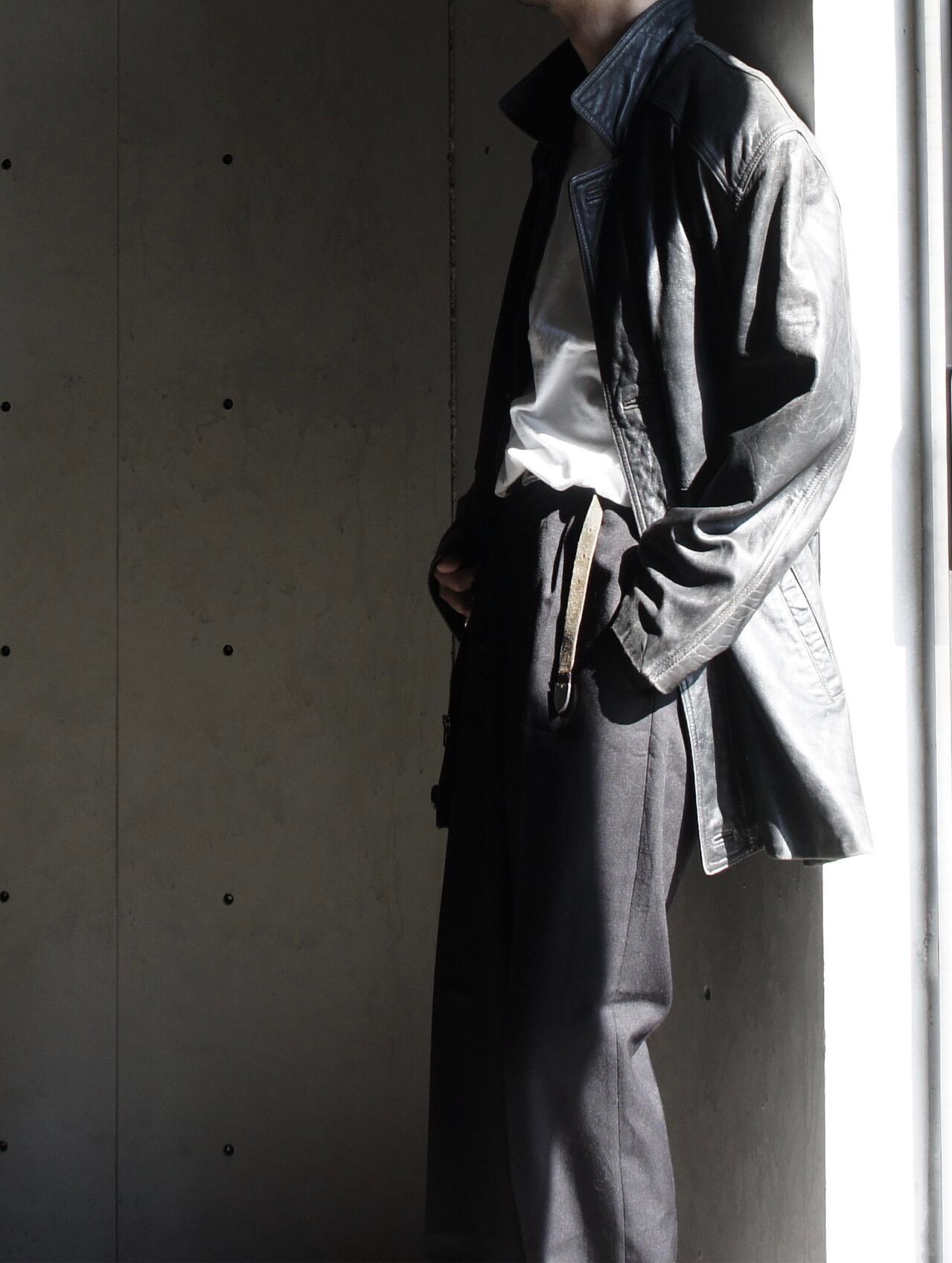 各メゾンやドメスブランドでも冬の定番としてリリースしているレザーのカーコート。