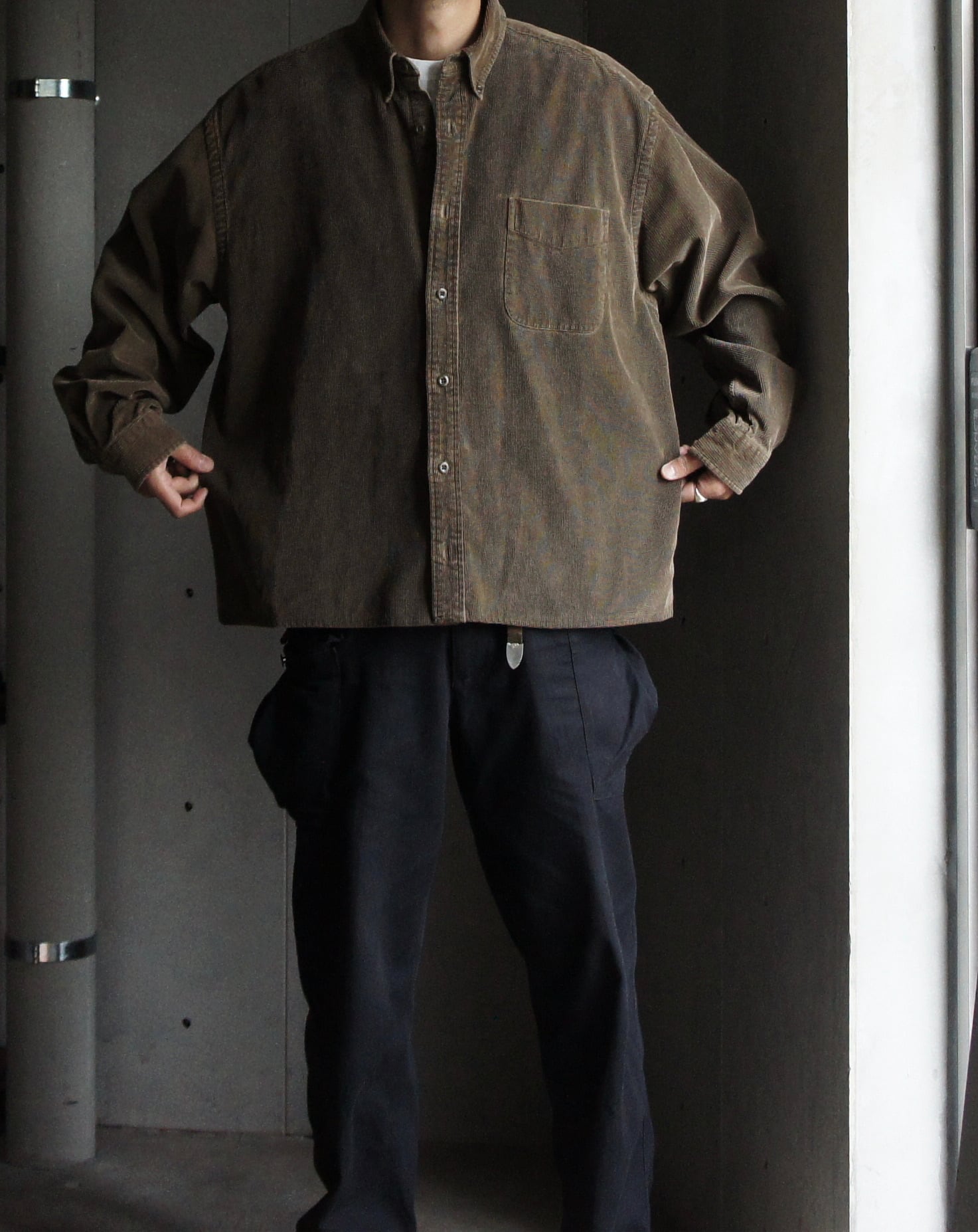 前オーナーによって着丈をリメイクされたコーデュロイシャツです。