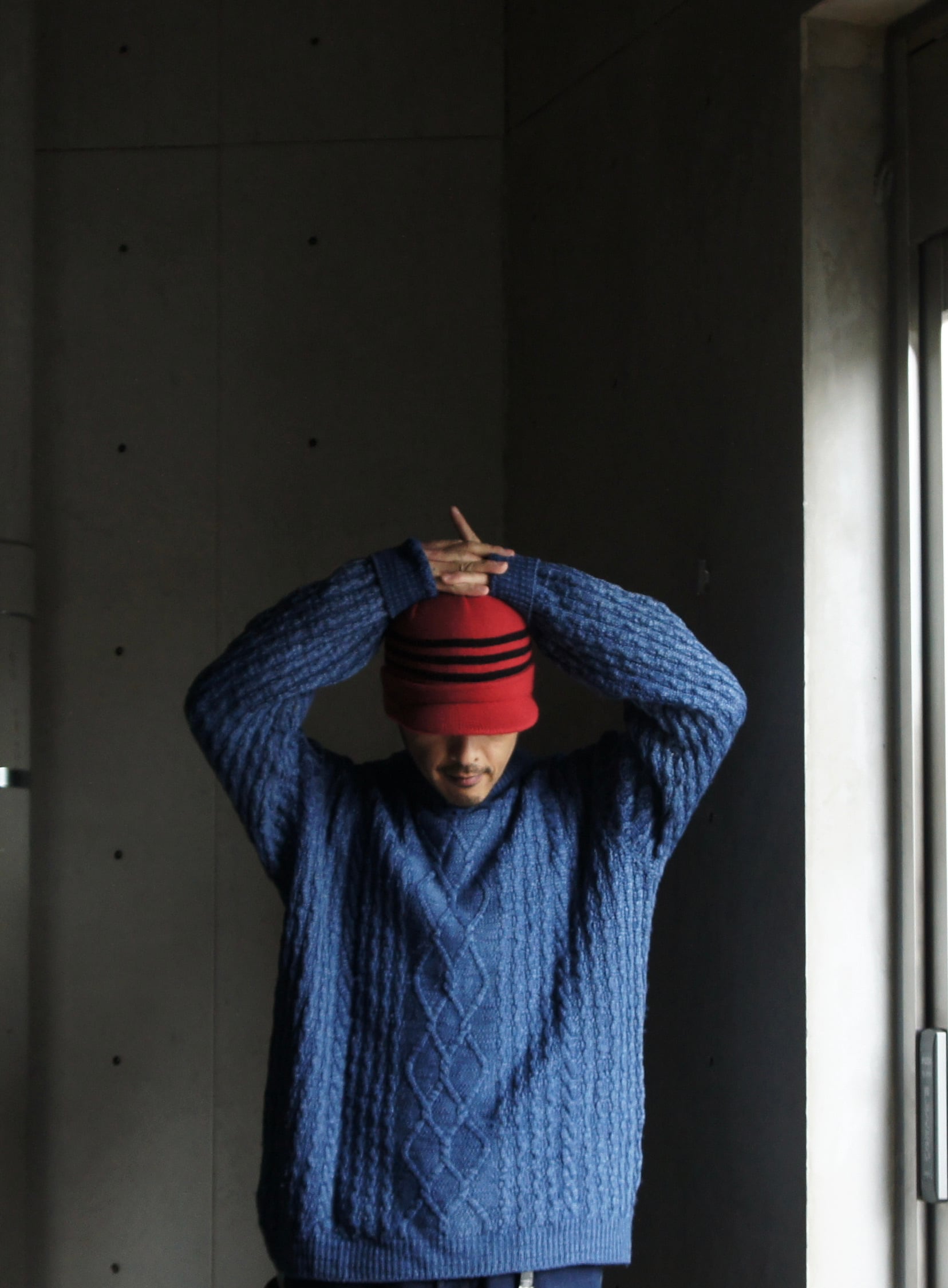 編み込まれたニット素材で柔らかく、暖かい作りです。