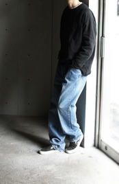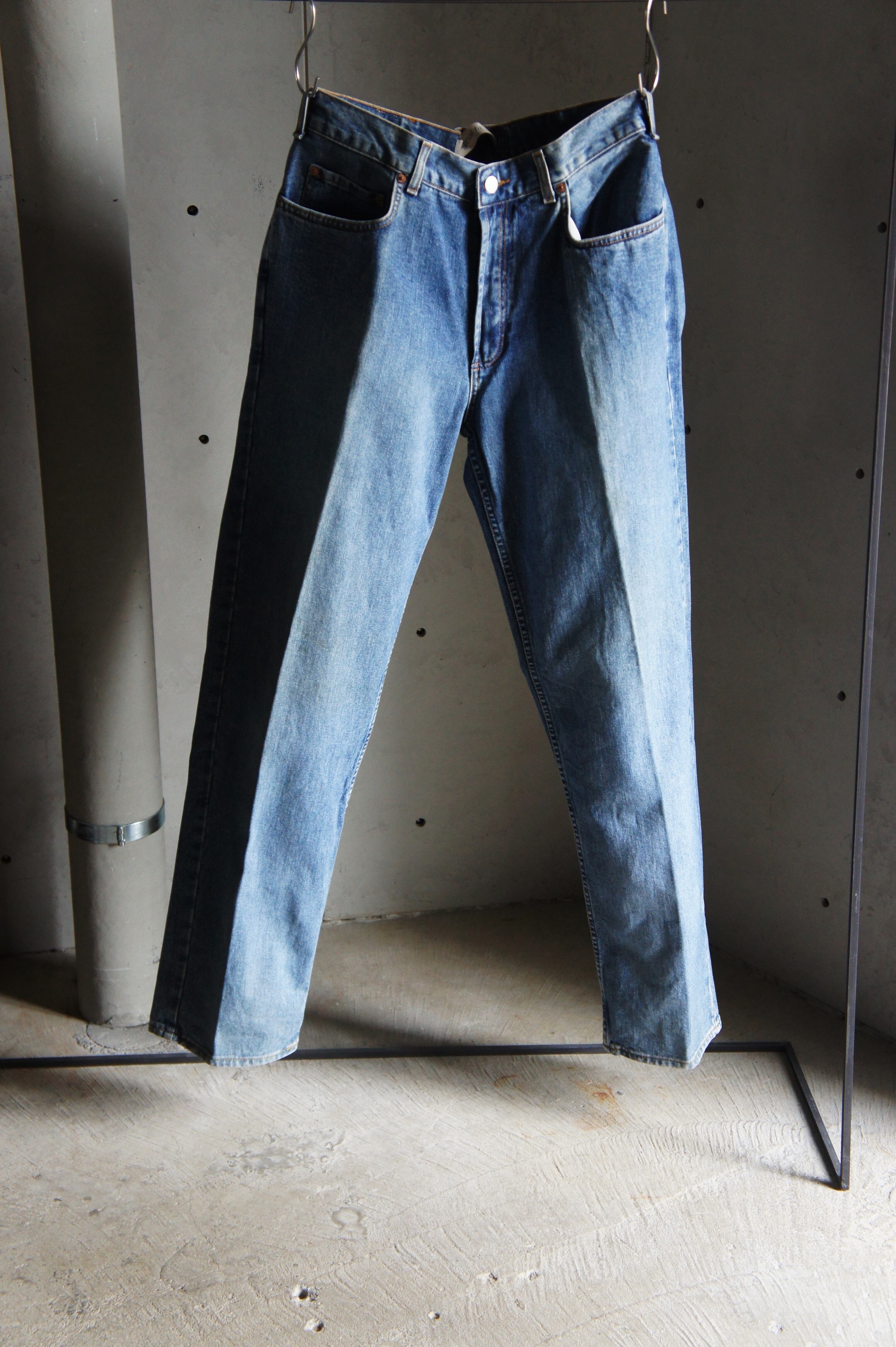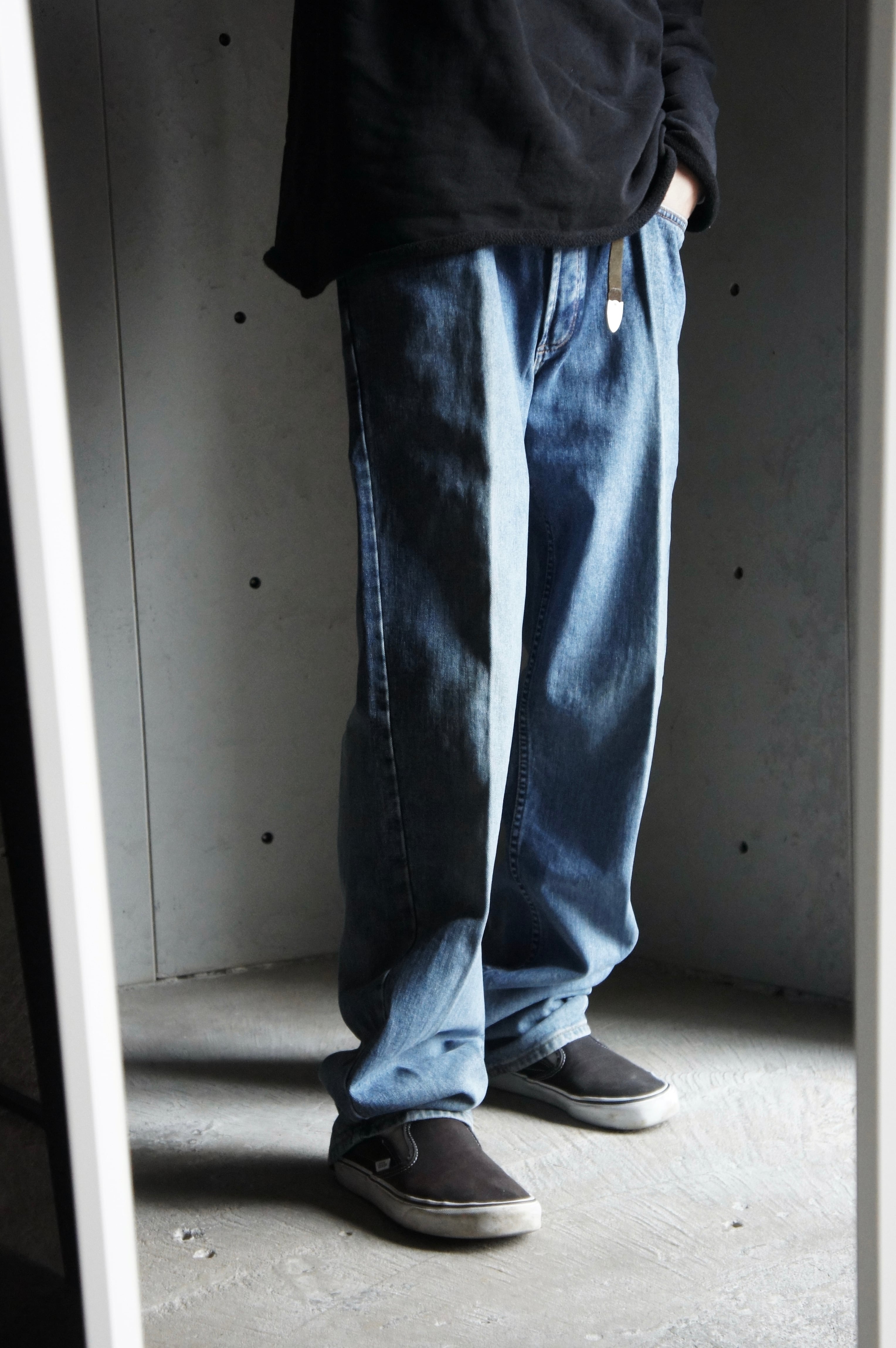前オーナーがクリースが出るように畳まれ、スラックスのようなフロントラインが出たデニムパンツです。