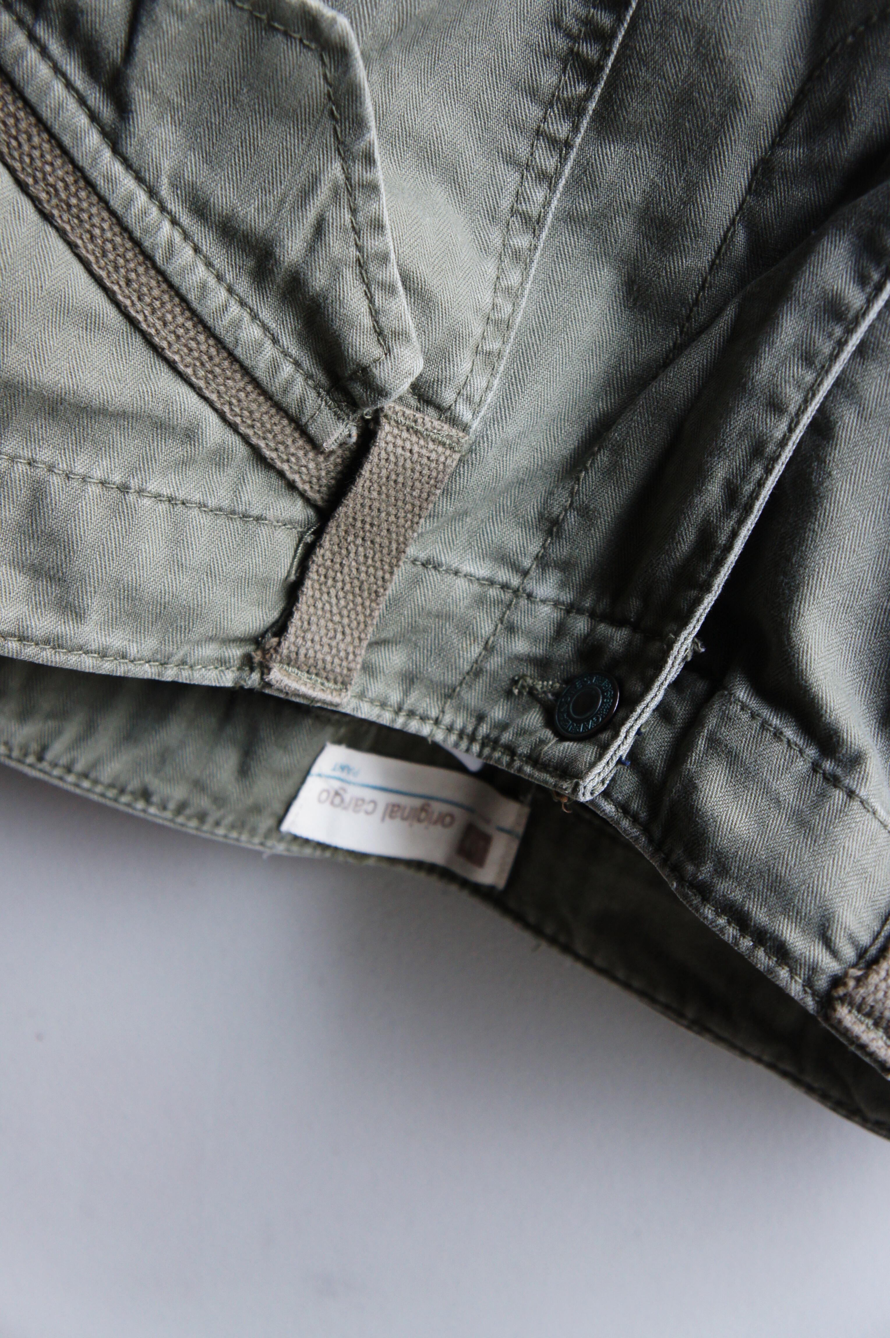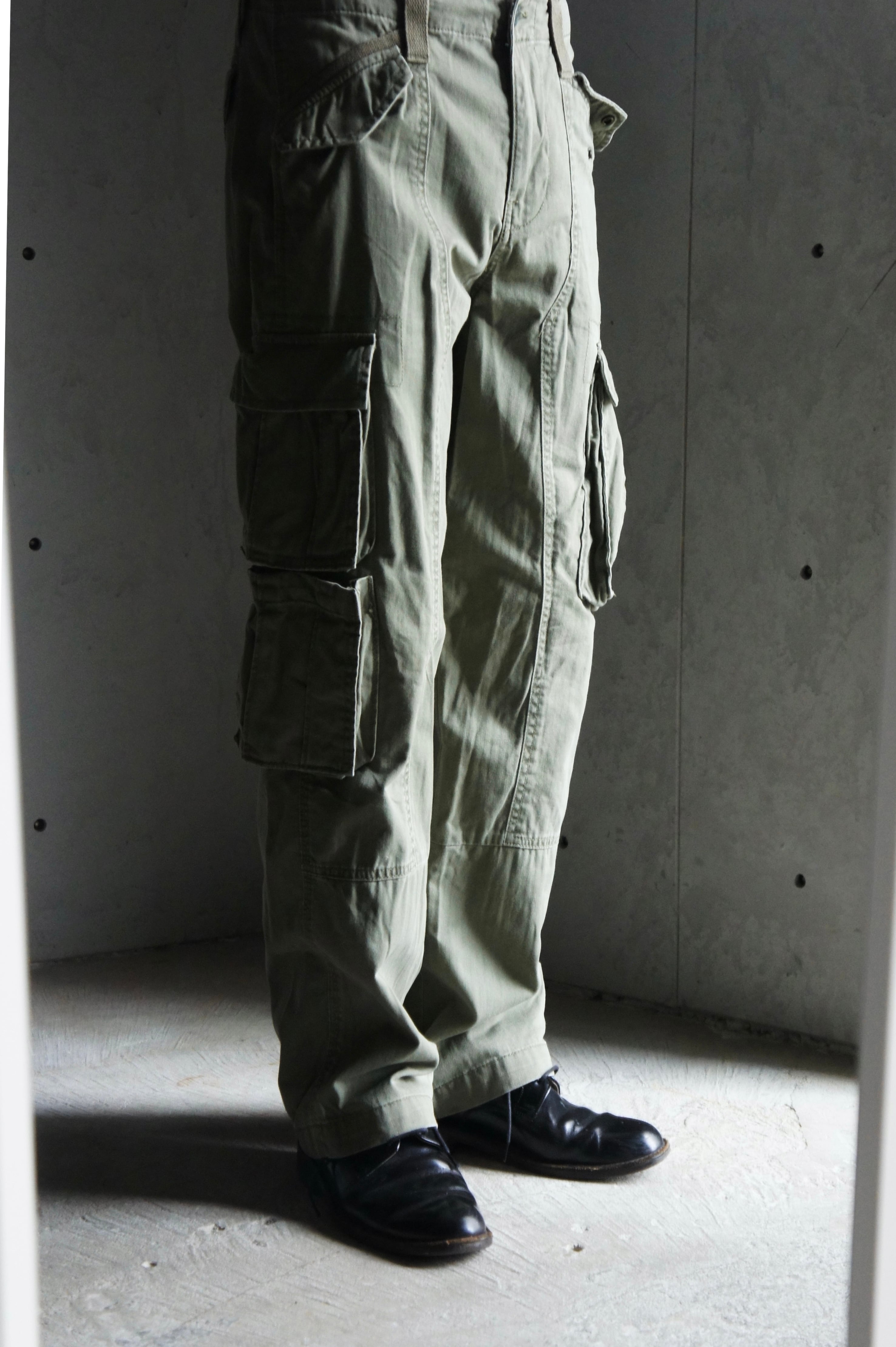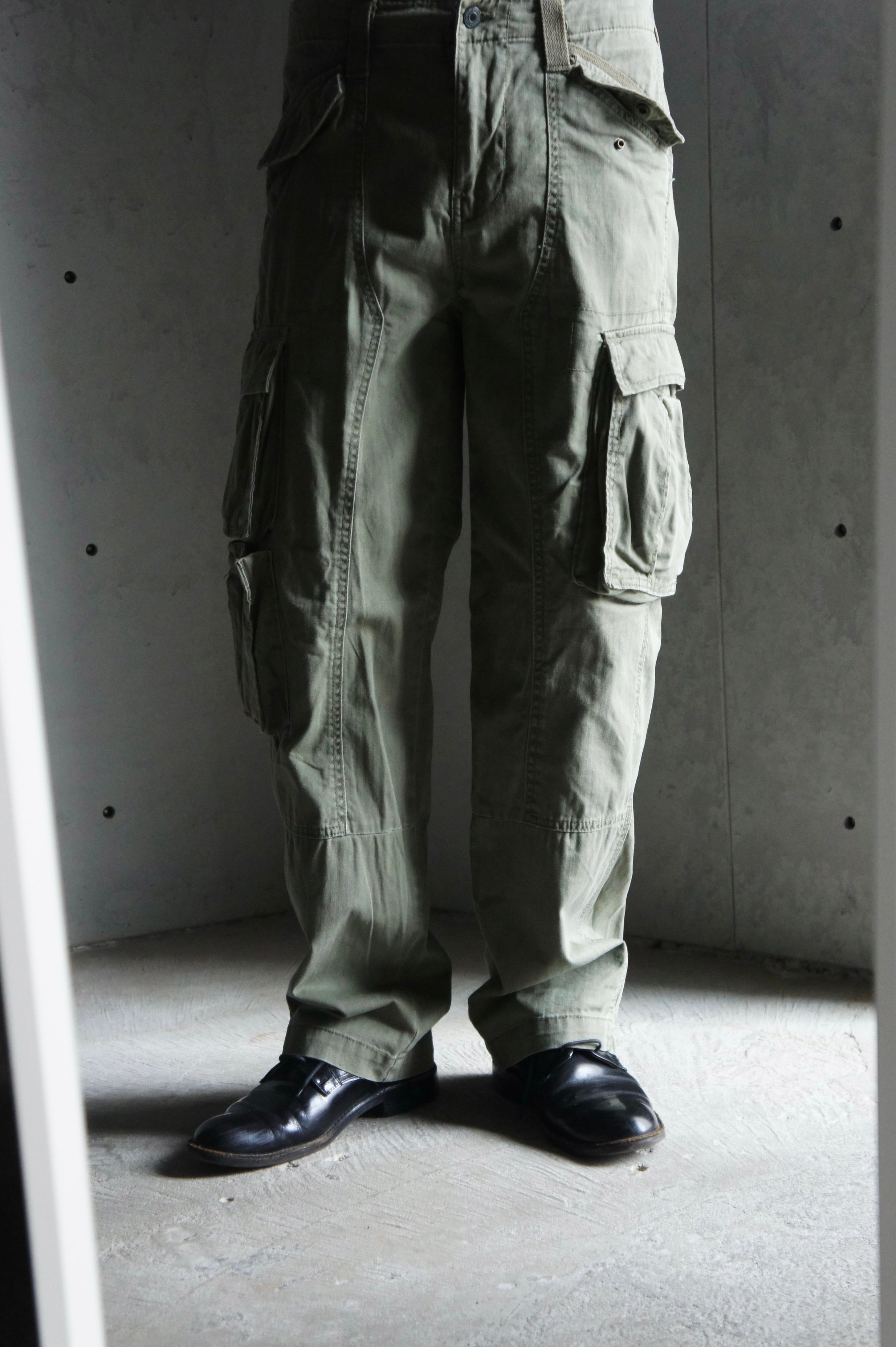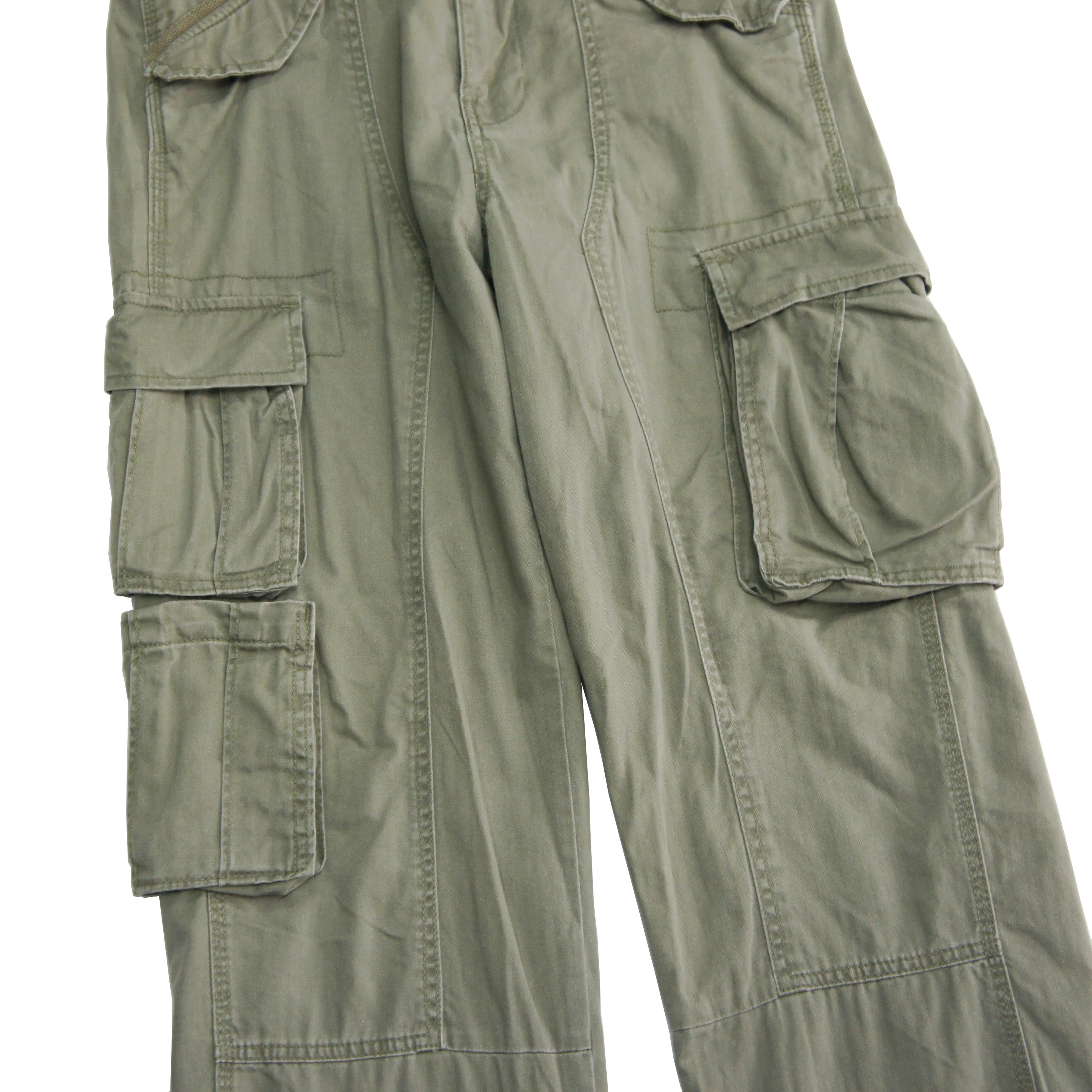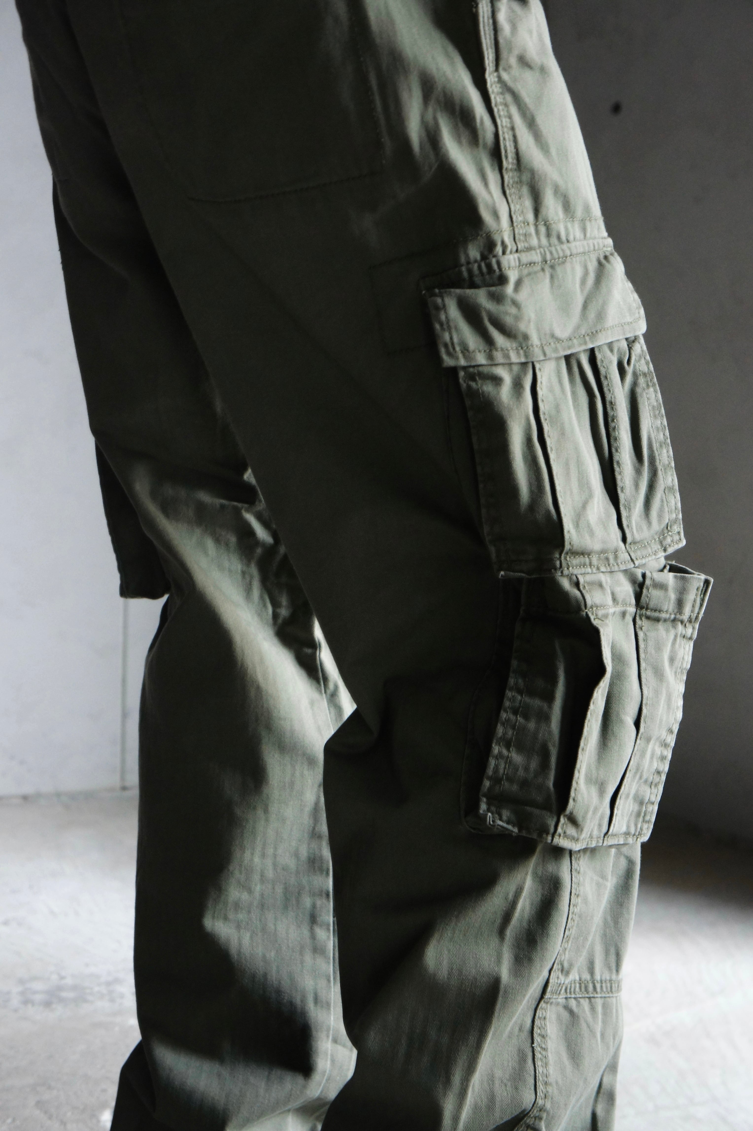 アシンメトリーなポケットの位置が特徴的なカーゴパンツです。
