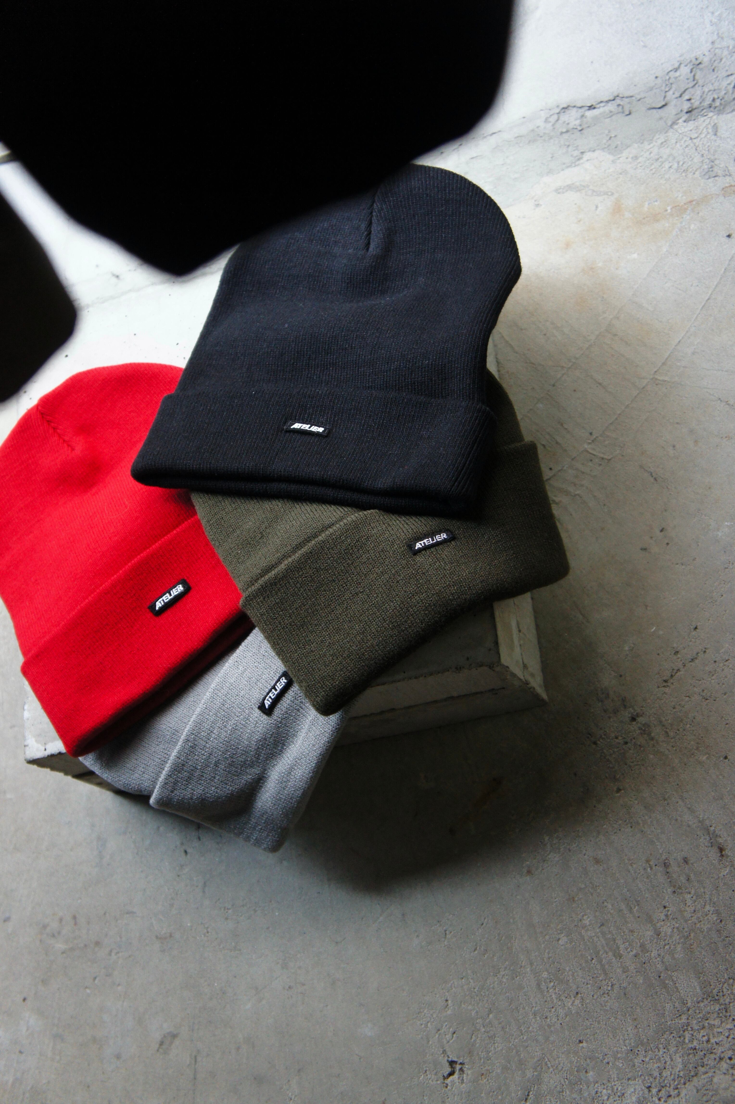 細かいゲージのリブ編みで保温性も高いビーニーです。